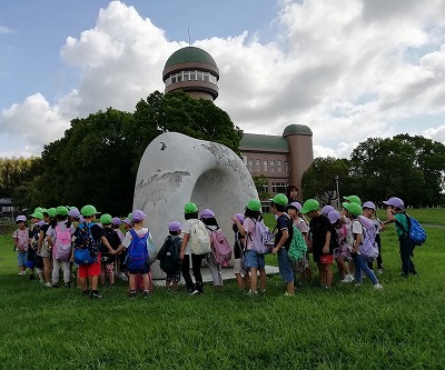 自然観察が目的でしたが、「歯だ~」「カッパ~! カッパが3人いるよ~」と、あちこちにあるモニュメントや彫像にも興味を持って話をしていました。