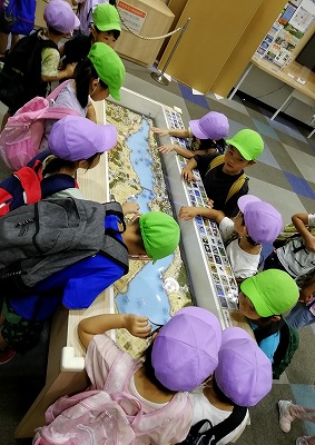水の館では、手賀沼の模型を見ました。「手賀沼って横に長いんだね」と発見!!