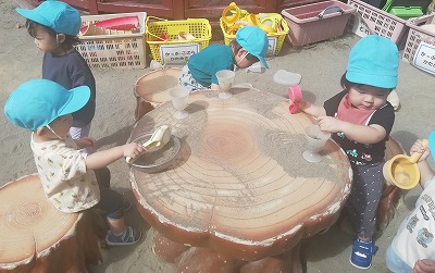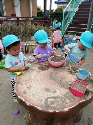 【砂場で遊んでいます(0、1歳児クラス)】