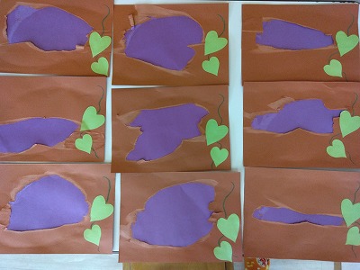 イモ掘りごっこ第2弾!!は、製作です。指先に力を入れて画用紙をちぎり、サツマイモを作りました。