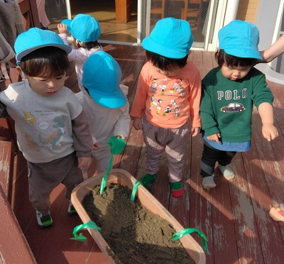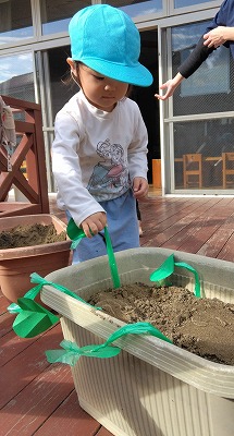 【サツマイモ掘りごっこ(0歳児、1歳児クラス)】