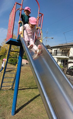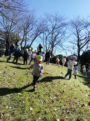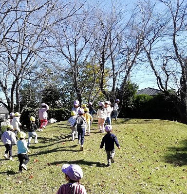 3歳児クラスも徒歩遠足。秋晴れの気持ちの良いお天気の中、中峠台亀田谷公園へ向かいました。よく歩き、公園でもたくさん遊んできました。