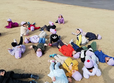 こちらは外遊び。 外は雲ひとつない青空。心地良い天気です。