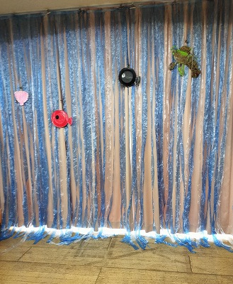 年中児クラスの子ども達は、パーティ会場を「スイミーのレストランにしよう!」と、飾り作りもしました。『スイミー』は、年長児クラスが発表会で行った表現遊びです。