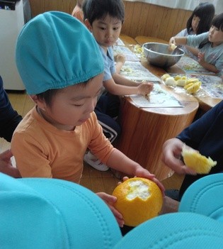 【園庭の夏みかんでジャムづくり(3~5歳児クラス)】