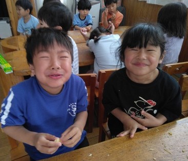 収穫した野菜は、給食の先生にお願いして、その日のうちに食べます。 1本、1個でも、皆で分けあって食べています。小さなひとかけらでも、自分達で育てたものはやっぱりひと味違うようです。