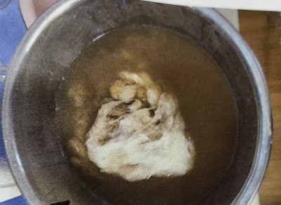 さらに今回は、「ヒツジの毛を触ってみたいな…」という子ども達の声に、毛を少し分けていただいたのですが、さてどうする? 皆で話し合いました。「先生(毛刈り師さん)が教えてくれた毛糸を作る」「ペットボトルに毛をつけてスペードちゃんを作る!」と目標が決まり、まずは毛の汚れを落とす方法を調べてみると…。熱湯で消毒もでき、汚れも落とせるようです。