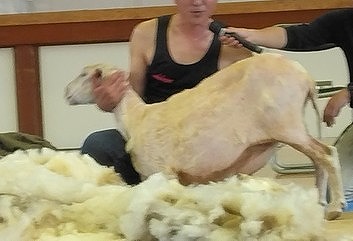 まず、毛刈り師の方がヒツジのこと、毛の刈り方のコツを教えてくれました。 前から向かうとヒツジが驚くので、後ろから抱えてお座りのような姿勢にさせてから、バリカンでどんどん毛を刈っていきます(この姿勢にするとおとなしくなるそうです)。