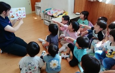 生まれて数日後から、子どもは身近にいるおとなの表情や声、動きを真似(模倣)し始め、それがやりとりや発語の育ち、発達すべてにつながっていきます。柏鳳保育園では、保育者がする、保育者がしてみせることで、子どもたちの模倣と、そこからの活動の広がりを促しています。