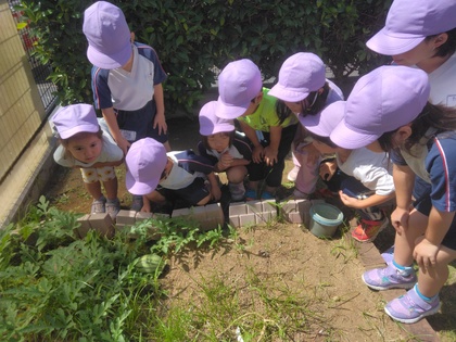 「大きくなってきたね」と保育者が言うと、「この前、皆で草取りしたから、大きくなったんだよ!」と得意気な返事が返ってきました。