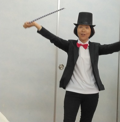 小さなひらひらのリボンが、ステッキに早変わり!! 皆、釘づけです。