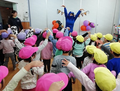 「もう一回やろう!!」、子ども達のリクエストに、保育者は張り切ってもう一度。