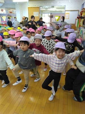 今年もうんどうマンがやって来ました。「寒さに負けない体づくりをしよう!」、ハッスルタイムのスタートです。うんどうマンは、はくほう保育園のヒーロー「あいうえおレンジャー」のひとりで、体を動かすことが大好きです。