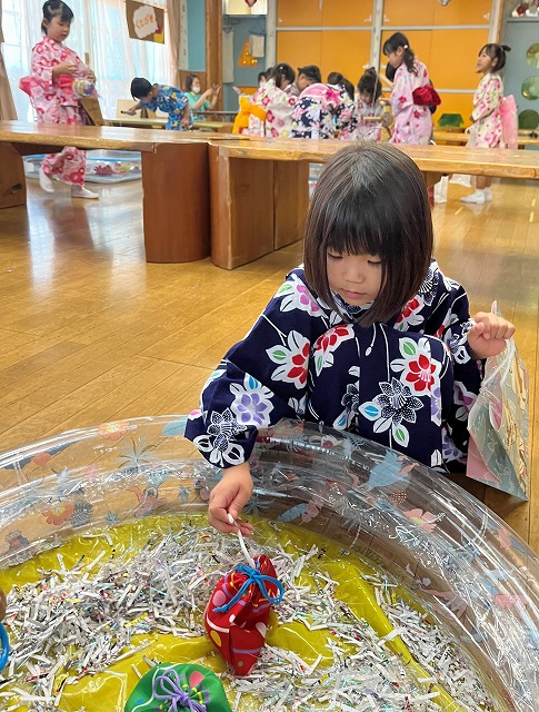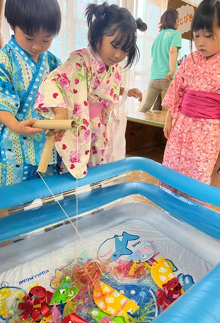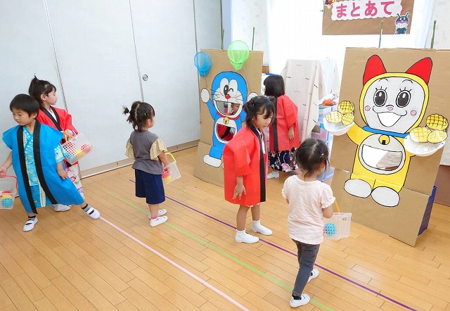 夏まつりを開きました。内容は、ひまわり組(5歳児)が企画しました。