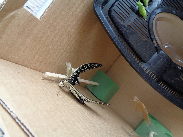 ずっと大切に育ててきたあおむしが羽化しました。アゲハチョウです。