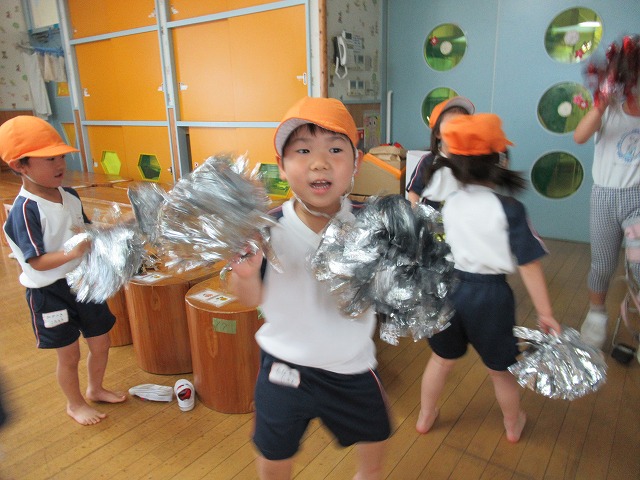 遊び方のルールも自然と声を掛け合いながら決まっていき、それを守りながら、展開していました。遊びは、3歳、5歳にも広がっていき、「はくほうスポッチャ」は大盛況でした。「今度は、何する?」と次のことを考えている4歳児です。