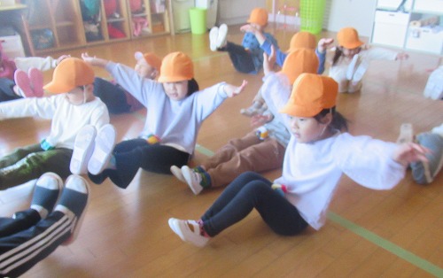 終了の合図で「ハア〜」と座り込みながらも、「楽しかったね。またやろうね」「 先生、もう1回やりたい」と、心も体もホカホカになりました。