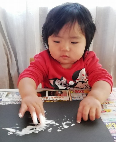 【色のついた小麦粘土で感触遊び(0、1歳児)】