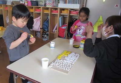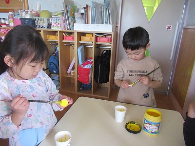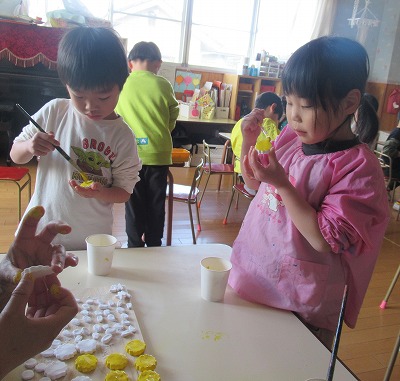 「ひまわり組さん、喜んでくれるかな」と、ワクワクしながら積極的に制作をしている子ども達です。