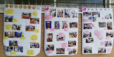 子どもたちの取り組みの様子を壁新聞にして、保護者の方々にも見ていただきました。
