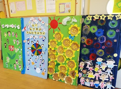 園で過ごした間、たくさんの「ドア」をみんなで考え、ひまわり会議でいろいろな企画をし、体験をしてきました。卒園に向けたみんなの意見は、「友達っていいね!」「仲間っていいね!」。この思いが最後の「ドア」に表現されました。第47回卒園式では、最後のドア「友達(仲間)」をくぐりました。