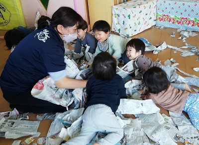 【新聞紙で遊ぼう!(1、2歳児クラス)】