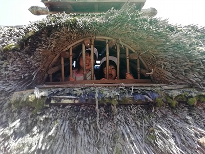 園庭の中央にかやぶき屋根の遊具があります。「かやっこ」と呼んでいます。さくら組(3歳児クラス)から使います。さくら組になった子ども達がこの日、