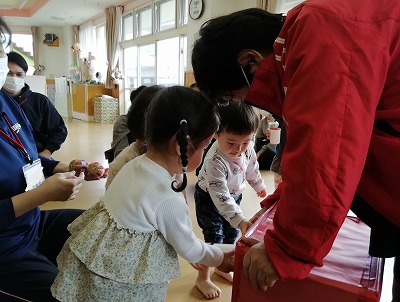 お祝いの冠を届けてくれるエンジェルちゃんに大喜びの子ども達。「今年は、洋服が違うね!」「かわいいー!!」、そんな声も聞こえてきました。