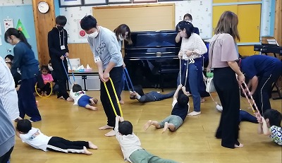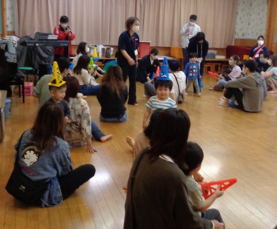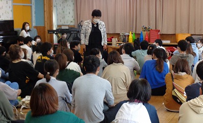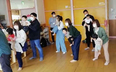 柏鳳(はくほう)保育園では毎月1度、佐藤節子先生(子どもの夢と未来舎)の「親子リズム」と子育て講演会を開いています。今月の「親子リズム」でも、音やリズムに合わせて動いたり、表現したり、身近な素材で作る手作りおもちゃを使って遊んだり、たくさんの体験をしました。写真は、それぞれ0〜1歳クラス(2枚)、2〜3歳クラス、4〜5歳クラスの様子です。