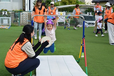 柏鳳保育園恒例の、子どもと保護者が一緒に楽しむうんどうまつり、今回は2歳、3歳クラスの様子をお伝えします。