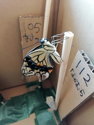 羽化しました! 箱から飛び出し、部屋の中を飛んでいました。