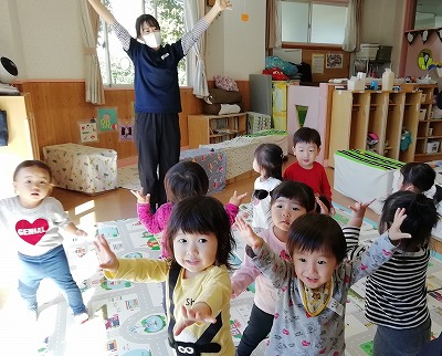 1歳児は、大好きなハロウィン・ダンス『グーチョキパーでパンプキン』を踊りました。ポーズも決まりました。