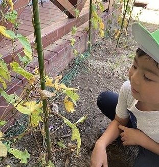 土の中から顔を出したイモムシをみつけると、「うわっ~、おおきい!!」と一段と目を輝かせていたAくんたち。 サツマイモを掘るだけでなく、農家の皆さんにもたくさん質問して、いろいろなことを教えていただいた一日でした。