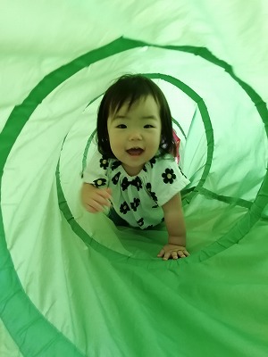 中に入った子ども達は、初めて経験する不思議な空間に、ソロリ、ソロリと歩いています。