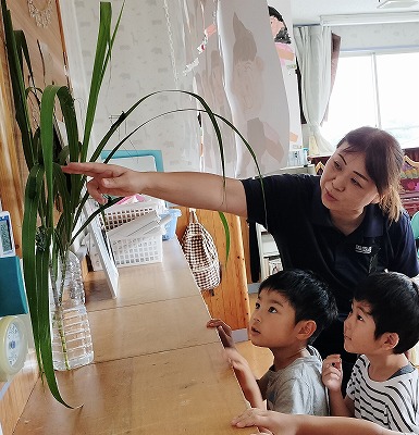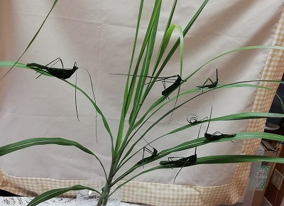 5歳児クラスの子ども達は、「バッタ!! バッタ!!」「すご~い」「カタツムリもいるよ」「どうやって作るんだろう」「作っているところ見たいね」と興奮気味に話しています。 「今度、谷津ミュージアム(秋の徒歩遠足の目的地)で見せてもらおう!!」と、自然観察員さんたちに会えるのを楽しみにし始めました。