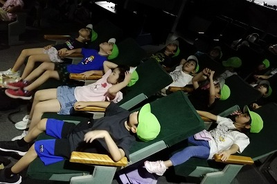 プラネタリウムでは、十五夜にちなんで月の話のプラネタリウムを見ました。 星や月が出てくると「キレイ!」「すごい!」、最後に大きな月が出てきた時には拍手が湧き、とても嬉しそうでした。