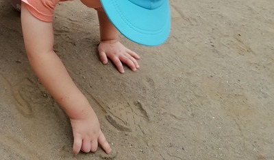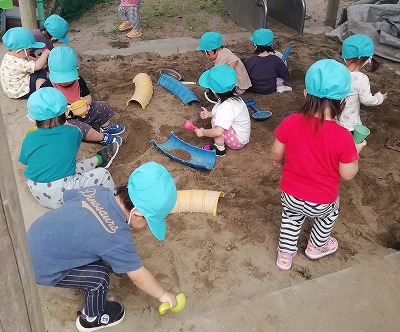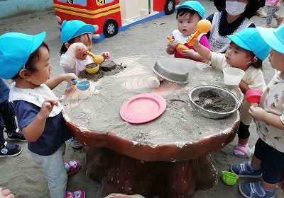 【砂場で遊んでいます(0、1歳児クラス)】