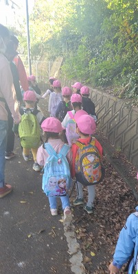 3歳児クラスも徒歩遠足。秋晴れの気持ちの良いお天気の中、中峠台亀田谷公園へ向かいました。よく歩き、公園でもたくさん遊んできました。
