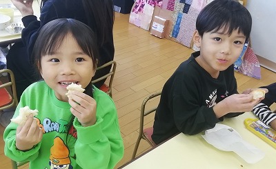二次発酵を終え、焼きあがったパンに大喜びの子ども達は、「おいしい!」を連発!