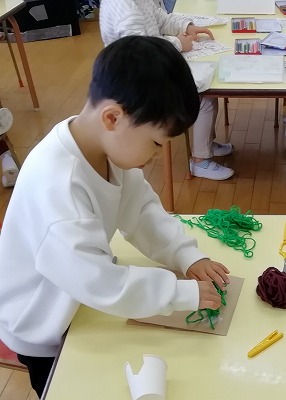 園に帰って、見てきたことを絵にしたり、保育者と写真を選んだりして、ドキュメンテーションを作りました。ドキュメンテーションも、皆で意見を出し合い、絵や文字を書いて作成できるようになりました。