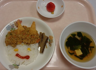 この日の給食は子ども達の大好きなメニュー、おいしい「鬼カレー」でした。