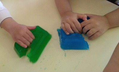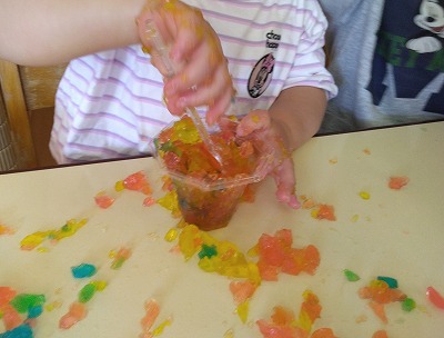 寒天をケースから出すと「わぁ~」と歓声があがり、皆一斉に手を伸ばしました。