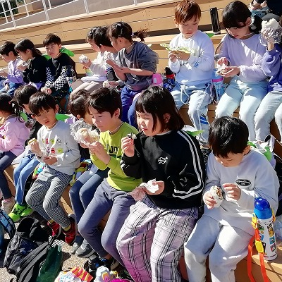 そして、おにぎりタイム! お天気が良かったのでテラスで食べました。