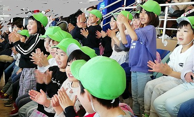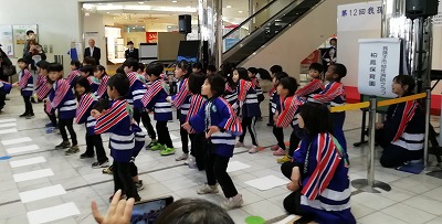 歌『世界がひとつになるまで』『みんな色の世界』と、踊り『ソーラン節』を披露しました。