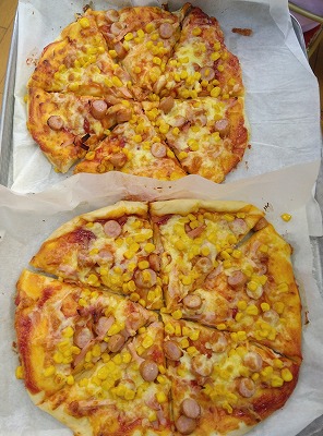 大きなピザができました!「おいしそうー!!」と、大喜びです。