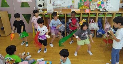 7月の誕生日会では、4歳児クラスの子ども達が「みんなで歌を歌ってお祝いしたい」と準備を始めました。