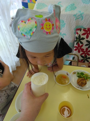 バターができあがりました!「まんまる~!」「おいしそう。いい匂い~」。