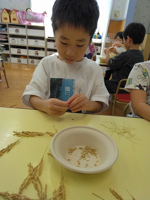 【稲を干して、精米しました(5歳児クラス)】