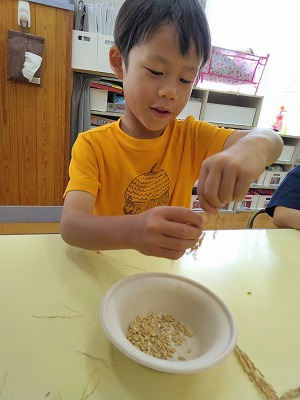 5歳児クラスの子ども達の「白米ができるまで! 大作戦」の始まりです。