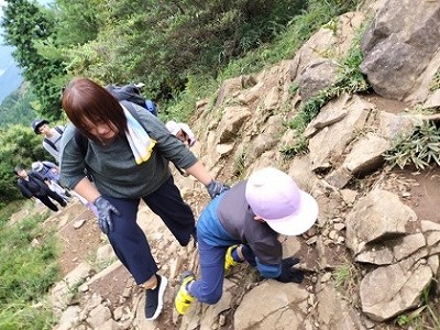登り始めの緩やかな道や長く続く階段の後に休憩を取り、また登り始めると、体も慣れてきたのか、景色を楽しむ様子もみられるようになりました。
